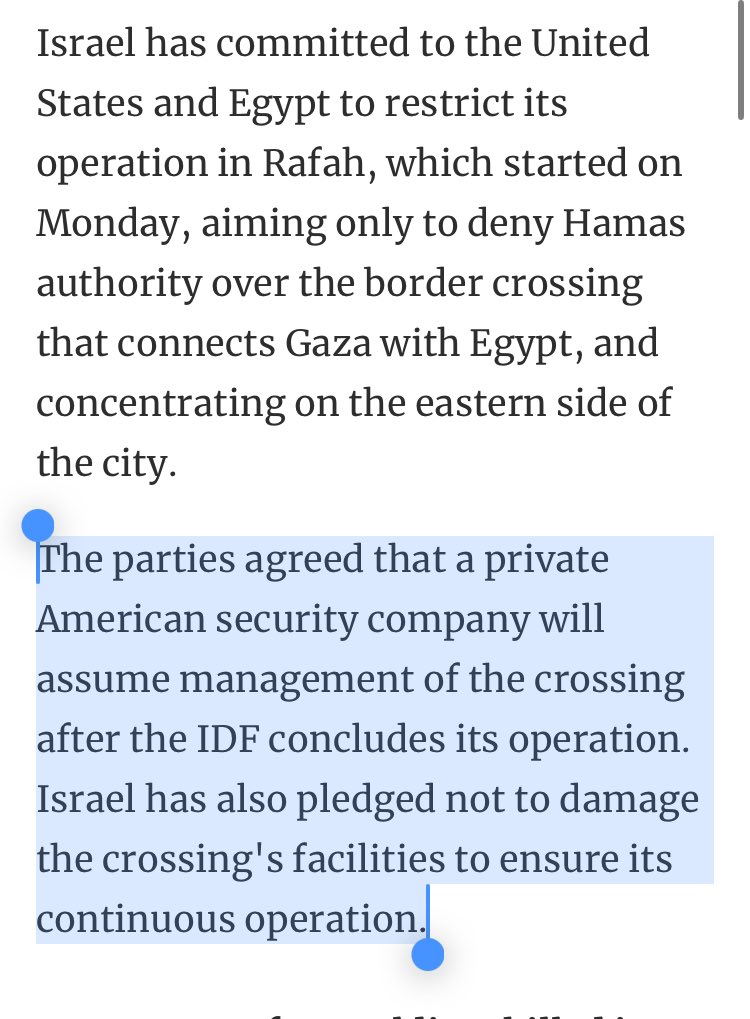 The USA plans to permanently occupy the Rafah crossing between Gaza and Egypt under the control of a US mercenary force. This will be to process the ethnic cleansing of Palestinians from Gaza into the Sinai desert. Doubtless CIA puppet General Sisi has his orders.