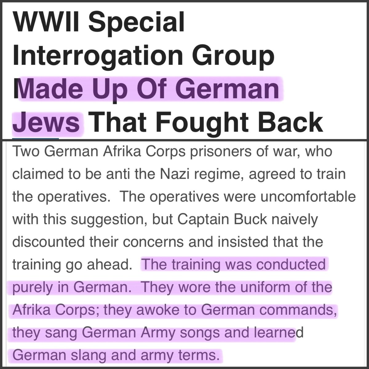 Since Twitter isn’t a fan of links, Here’s some search prompts to research this topic for yourself for those that enjoy doing so: 🔎Afrika Corps 🔎Special Interrogation Group 🔎X-Troop Churchill 🔎Jewish Brigade Group There’s even a book you can even find on Audible and Amazon. https://t.co/lSzMYHJRKU