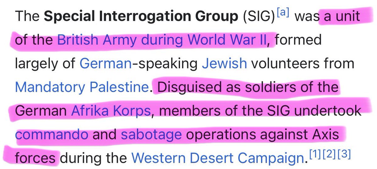 Yup yup! Britain's Special Interrogation Group was a covert unit of Jewish soldiers disguised as German soldiers to secretly infiltrate the SS. Then later, Churchill publicly stood them up as their own unit with the intent to capture and kill German soldiers. https://t.co/L28TigtPo3