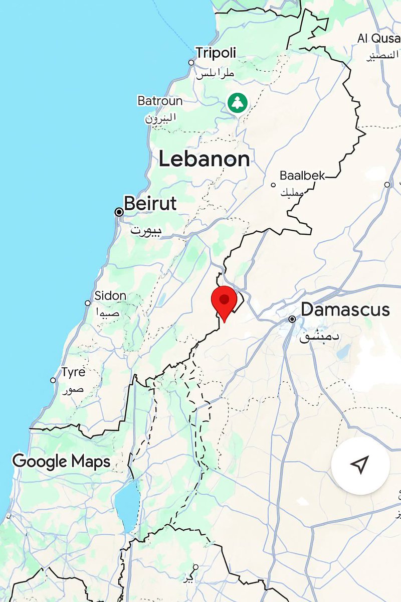 🇸🇾 The Israeli army has reportedly taken control of the town of Rakhleh in Syria, a move likely approved by Syrian authorities. The town, situated on a strategic hill, overlooks three major routes: Baalbek (a stronghold for the Lebanese resistance) Damascus, and Beirut. Israeli control of Rakhleh places their army approximately 20 km from Damascus, 50 km from Baalbek, and 60 km from Beirut. Consequently, the al-Masna–Beirut and Zahle–Beirut routes now fall under Israeli ground-fire control.