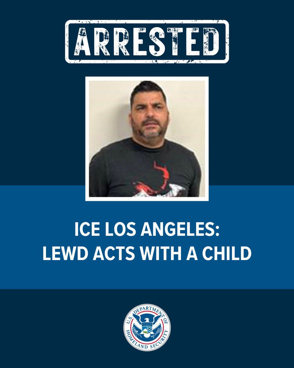 ICE Los Angeles arrested Elkis Lazaro Hermida, a Cuban criminal illegal alien convicted for lewd acts with a child. This child predator is now in ICE custody pending removal. To the LA Rioters: @ICEgov WILL continue to enforce the law and arrest criminal illegal aliens. https://t.co/vWxfRTnMEe