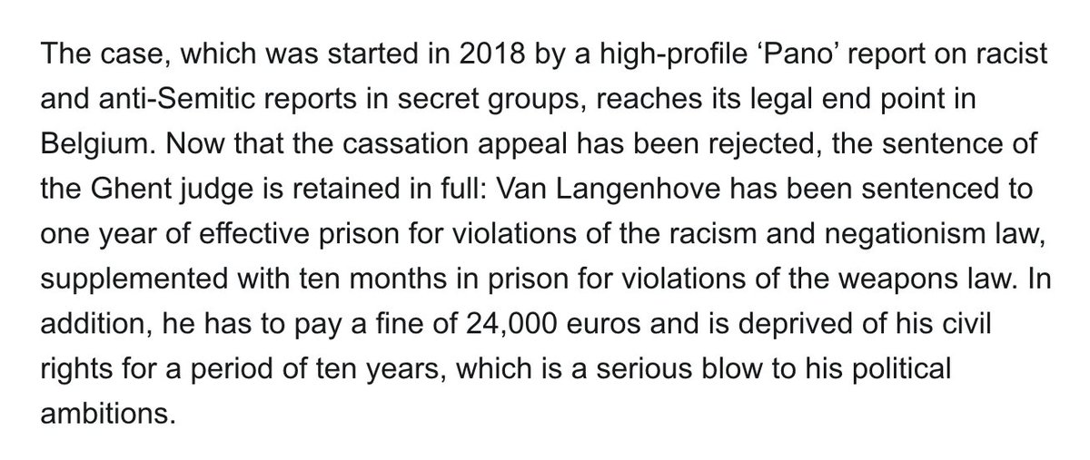 In 24 hours, I will get the verdict from my appeal at the Supreme Court for the hatespeech case that got me a prison sentence and a 10 year political ban. Eight years of my life. Countless missed opportunities and family moments. €395.000 in legal costs. Lawyers say our case is watertight. Among other strong arguments, it was a clear breach of my constitutional rights that the judge did not even allow me to present my defence. I'm less certain. I have long realised that 'the law' and 'the rule of law' don't exist. They are simply tools used by the regime to crush opposition. Whatever the outcome, I will continue to fight. Even if I have to do it from prison or from a faraway country. We may lose yet another legal battle — but we will win the metapolitical war. Tonight I will sleep well, knowing that the stronger the enemy, the greater the honor.
