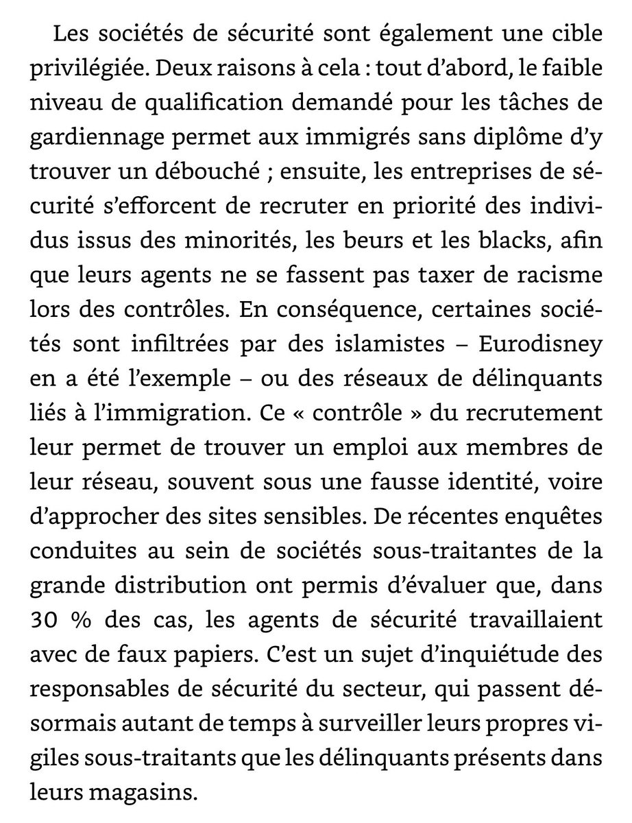 Le livre Ă©voque ensuite lâislamisation de lâĂ©cole puis lâengrenage du recrutement islamique des sociĂ©tĂ©s de sĂ©curitĂ© :