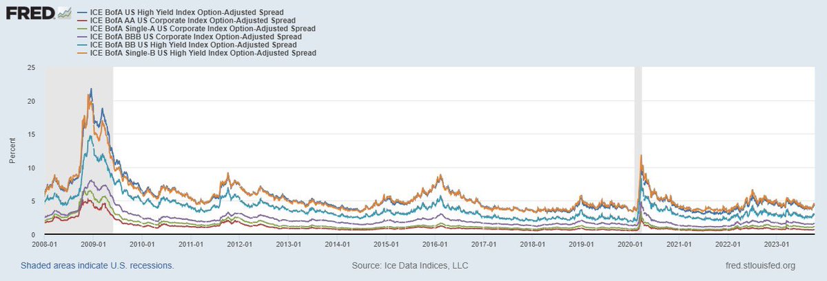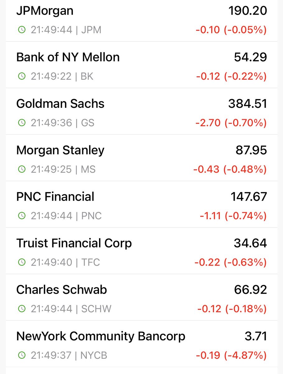 #JustDarioDaily 🚨THE BIG BANKS ARE ALREADY UTILIZING THE FED BTFP! 🚨 What do $JPM, $C, $WFC, $PNC, $SCHW, $BAC, and $GS have in common at the moment (besides greed)? They are all losing a shit ton of money... The top spot goes to $BAC, currently carrying $135bn "paper losses" in its belly, followed by $C and $WFC, both at around $100bn. True, these losses are only due to the increase in interest rates, and the US will never default on its debt (because if it does, we go back to barter). Hence, these are "paper losses," and banks are in great shape, right! Well... thanks to the FED's "virtual bailout," better known as the BTFP program they are already benefiting from… Wait what? Yes sir! Why am I saying that the big banks are already utilizing the #BTFP? Am I nuts? No, I am not, and I will explain why. Because of the #BTFP potential total capacity of up to $2T, investors are already associating its benefits with the big banks, even if they are not tapping into it (yet). Wait a second, doesn't the #BTFP expire in 5 months? Well... if Jerome Burns wants the world to keep believing the #FED will maintain rates "higher for longer," he has no alternative but to extend the duration of the program, making it "temporarily permanent," just like they did for Quantitative Easing before (for example). The FED enjoys keeping its cake and eating it too, so rest assured their habits will not change. 😌 There is a problem, though. The #BTFP only covers US Treasuries, Agencies, and Government Guaranteed MBS. Here is where investors are making a big (big) mistake. ⚠️They are assuming that if the time comes, the "BTFP cocoon" will transform into a "TARP butterfly"! 🐛 This is the only rational explanation for the market willingly ignoring what's going on in the Credit space, starting from Commercial Real Estate, and not "punishing" the Big Banks for the ridiculously low Credit Loss Provisions they booked for Q3. Another sign of this general thought lies in Credit Spreads across all rating spectrums "refusing" to increase. [https://x.com/dariocpx/status/1713812823938384383?s=46&t=Hz7-qku8ZNVPw6L9nBJOZA…]. 🤦🏻♂️ Banks are as smart as foxes, and they have seized the opportunity. Have you noticed that Credit Loss Provisions for Q3 are consistently lower than Q2 for all the banks that reported so far, despite the increase in Non-Performing Loans (and a general skyrocketing of Chapter 11 filings)? While before, I felt a bit lonely, I have to admit that now it is so obvious that banks are "twisting" the numbers so much to "beat expectations" that they are at odds with the reality everyone can observe. Although we cannot blame them too much when the government, which should police them, is doing exactly the same. 🙈 So here we are today, with banks faking their numbers in plain sight, and investors being happy about that. 🤦🏻♂️ In just a few decades, we have literally moved from the concept of an "Intelligent Investor" to an "Ignorant Investor." The reporting season is only beginning, and I am particularly curious to see how European banks will fare, starting from UB-C-S 😬, and how they will manage to hide the even bigger losses government bonds are digging into their HTM books. Notice I said "losses" and not "paper losses" because in Europe, they don't have a BTFP (yet). Considering the outrageously high inflation in a contingent that is barely growing its GDP, it will be very hard for politicians to endorse another inflative Central Bank weapon of mass wealth destruction. 😵💫