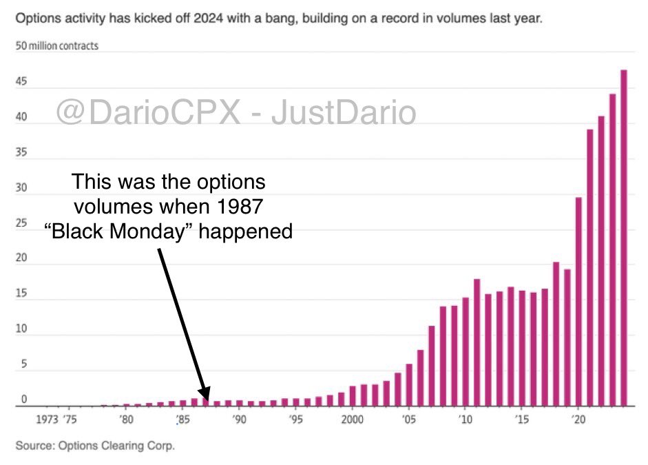 Just to help everyone to picture the magnitude of things today better I highlighted in the chart 1987 Options Volumes (when computer based strategies triggered the infamous Black Monday #stocks crash)…. https://t.co/LasjoFNkby