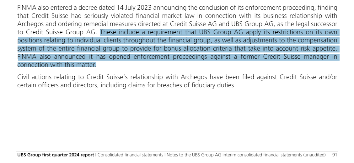 I wonder if this is what @TheRoaringKitty figured out about $GME 🤔 Because of a 2023 decree related to Archegos bust $UBS now has a strict cap on risk exposure to single counterparts!👀⚠️ What does this mean? It means that if #CreditSuisse (now part of UBS) truly allowed its clients to extend the equity swaps and other derivatives they were using to short the stock, then they aren't in a position to roll those forward anymore for the full size. Considering it is nearly impossible to roll such a toxic exposure with another bank, if all the above is correct the big losses of the first GME squeeze in 2021, assuming they were hidden in $CS belly, are about to surface and this time hedge funds and market makers will be forced to cover their shorts