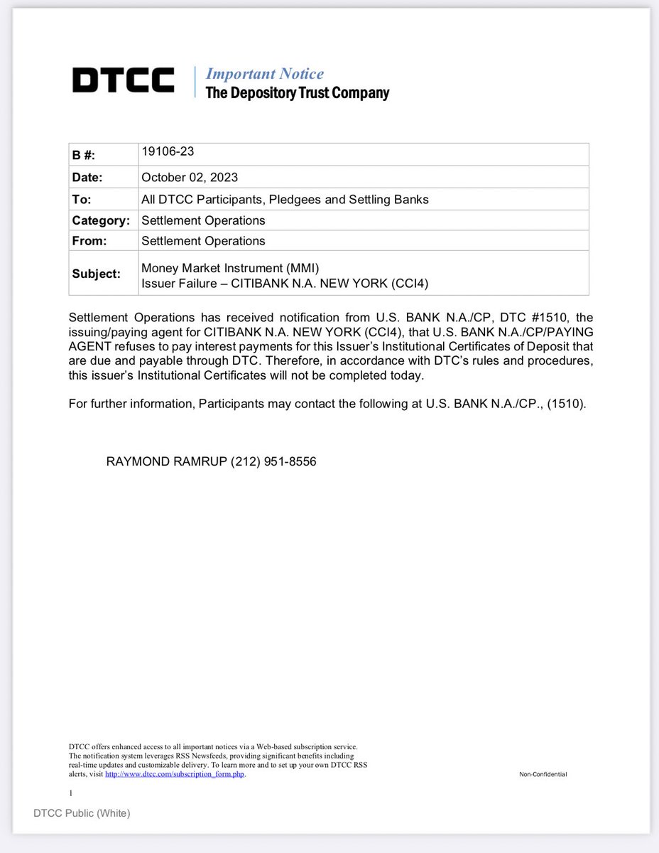 🚨Another Money Market fund goes bust, it’s $C this time 👀🚨 I wonder how many are paying attention to what happens at the #DTCC Remember when #Lehman started to get notices like this one? 🤫 https://t.co/YBuVoQCQZM
