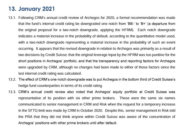 I think I decyphered @TheRoaringKitty message: he is calling out $CS $GME swaps BS ⚠️ 9th Jan 21: when Archegos started to breach swaps risk limits with CS [Pic 1 from #SEC report] 20th April 21: when CS declared they covered most of their exposure against those swaps [pic 2]