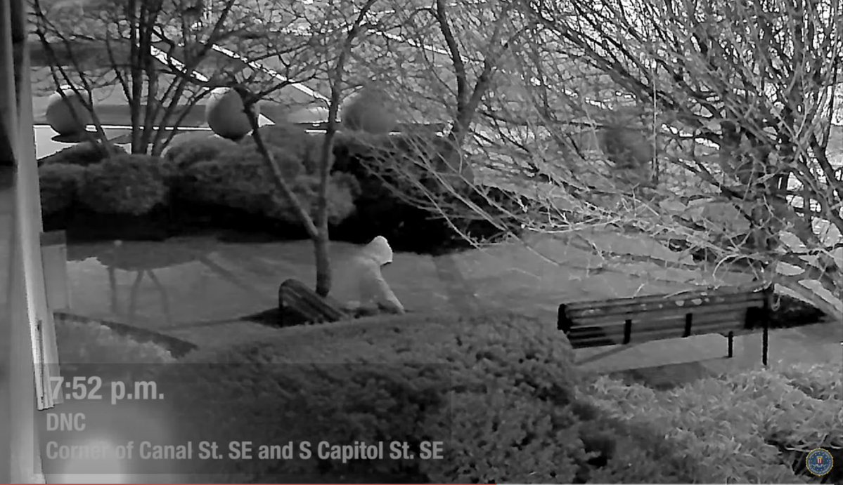 For reference, here is a screenshot of the FBI provided surveillance footage of the alleged pipe bomber seconds before. Notice the same bench.
