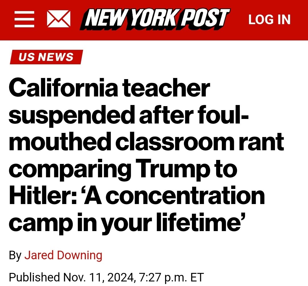 BREAKING: A California public school teacher had a total meltdown in class because Trump won. He compared Trump to Hitler, told kids they could end up in concentration camps, called them privileged, said Kamala lost because of racism/sexism & MORE I have the audio Buckle up👇🧵
