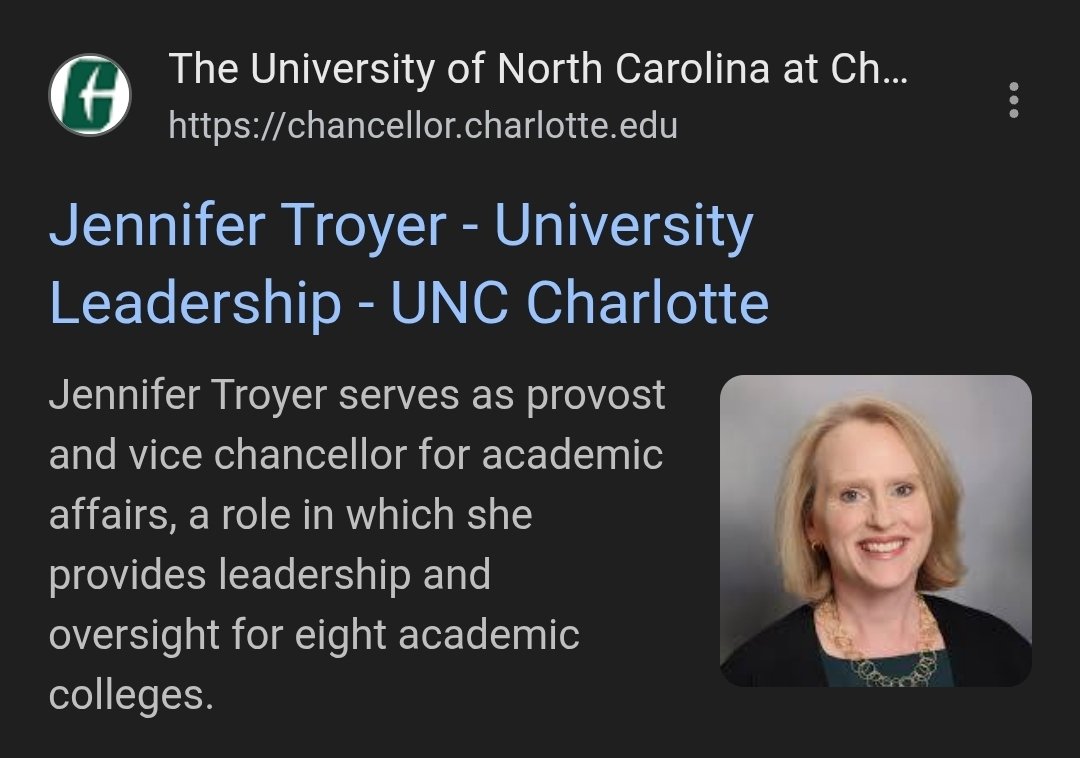 The university provost is Jennifer Troyer. https://t.co/6kstEXjveW