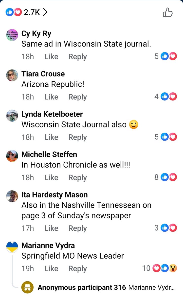 Major newspapers all across the country. https://t.co/80o5ln4jTa