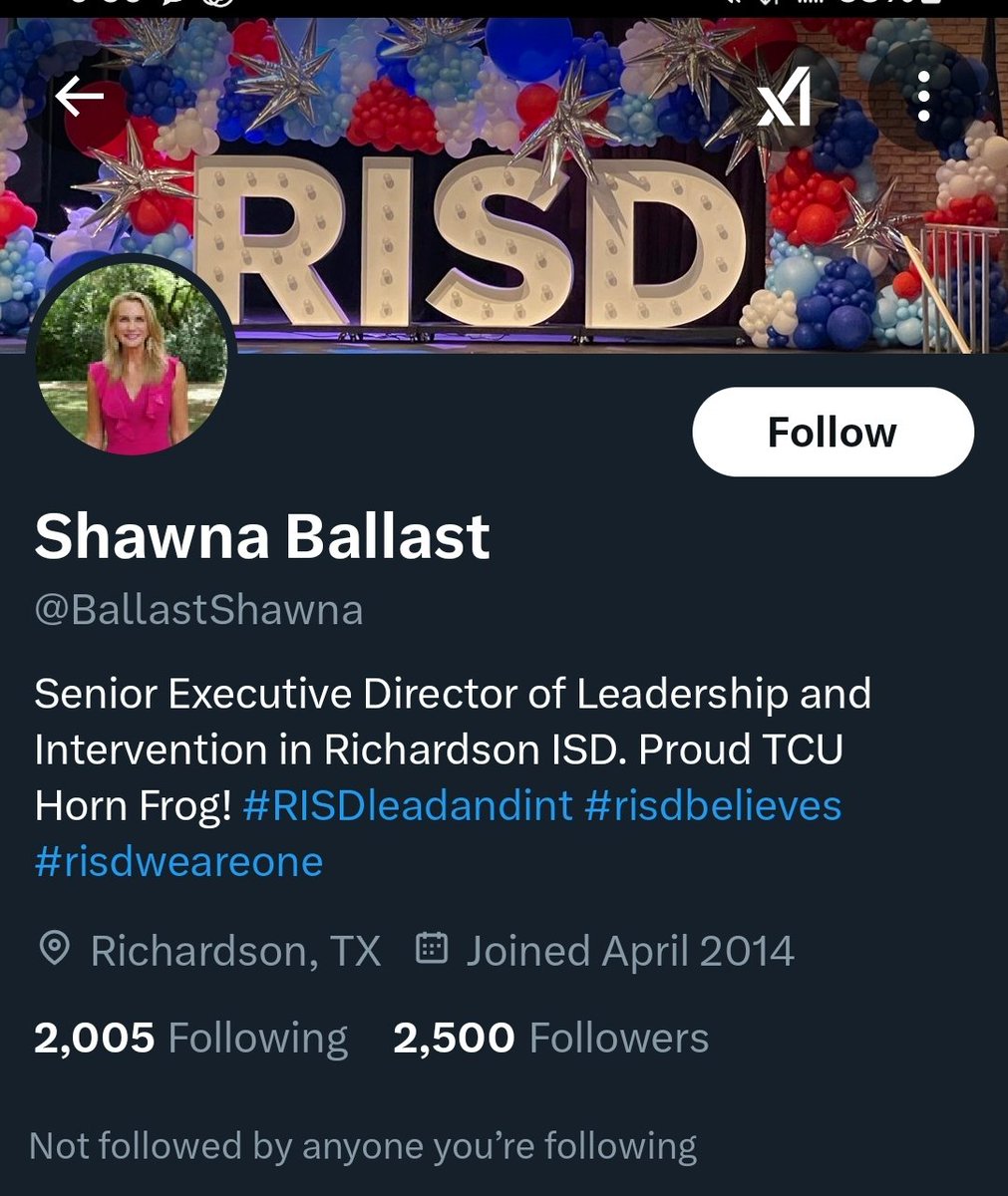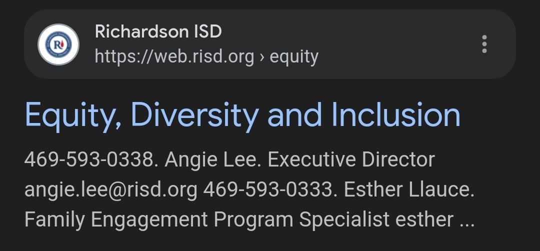 Angie Lee is listed at the Executive Director of "Equity, Diversity and Inclusion" on the Richardson ISD website. https://t.co/CB22qn77Pz
