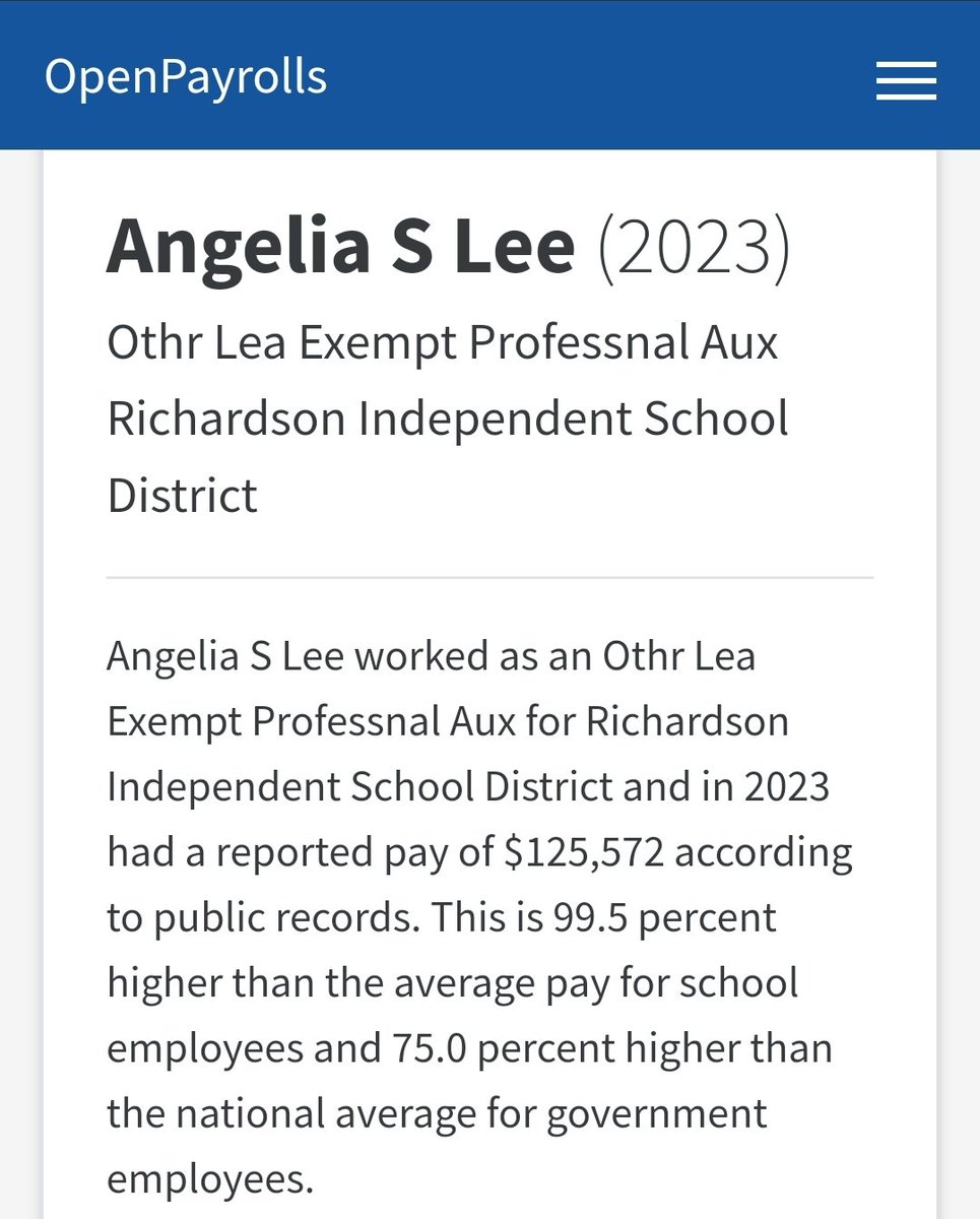 Angelia Lee made $125,572 at Richardson ISD in 2023. https://t.co/Mu4NB0U1t3