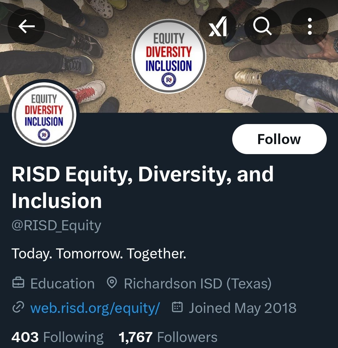 The school district has an X account for their "Department of Equity, Diversity and Inclusion." The account is @RISD_Equity. https://t.co/2uvsDciztQ