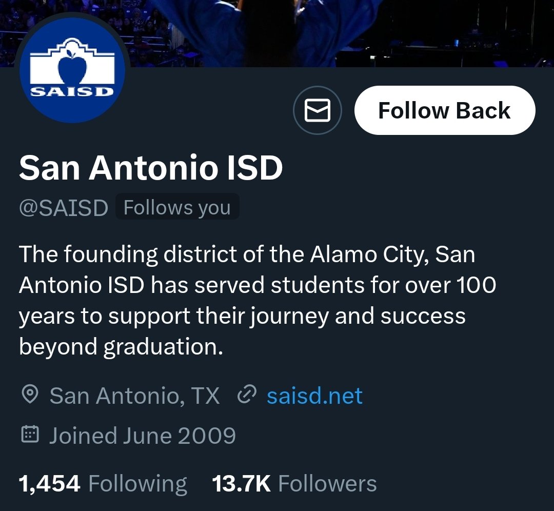 The school district is San Antonio ISD (@SAISD) in Texas. https://t.co/pIIugBj1ag
