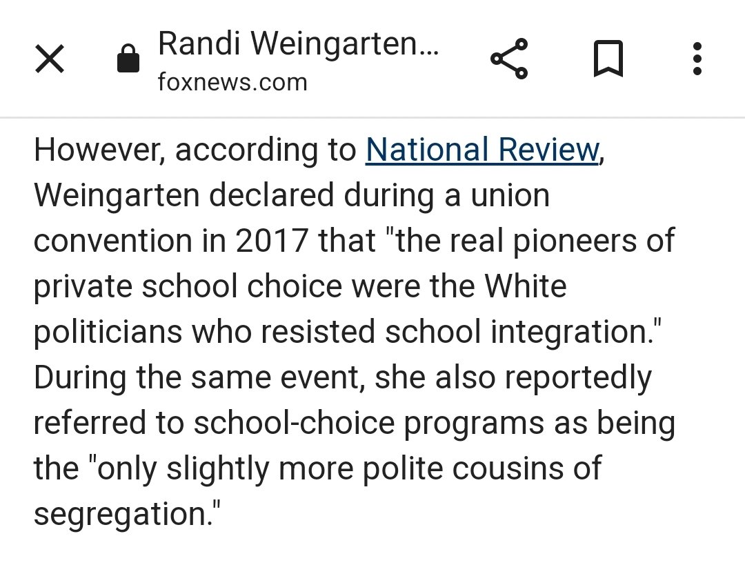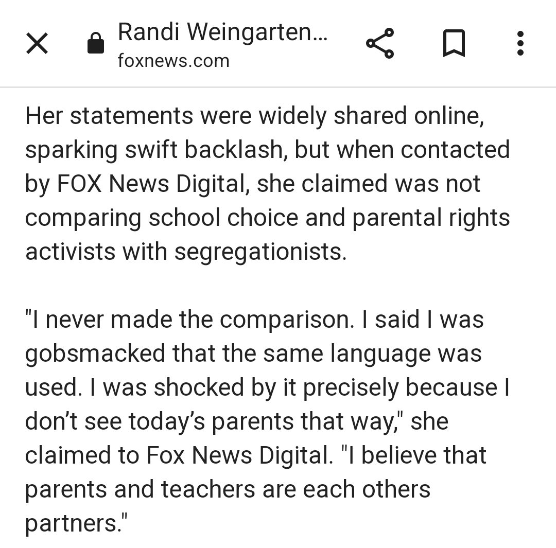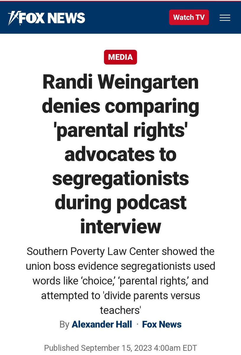 thank you for inadvertently doing more to advance school choice than anyone could have ever imagined, @rweingarten. https://www.foxnews.com/media/randi-weingarten-denies-comparing-parental-rights-advocates-segregationists-podcast-interview