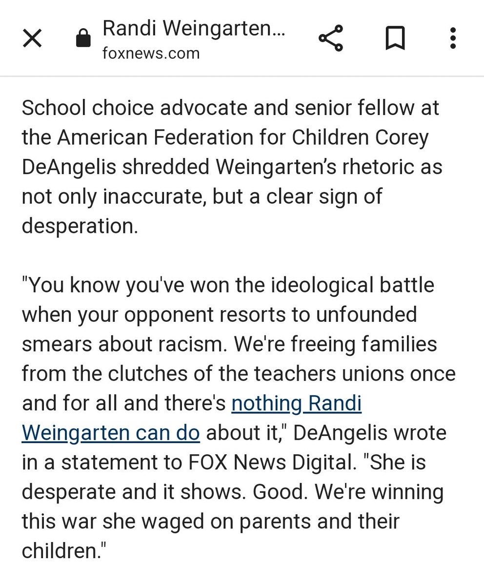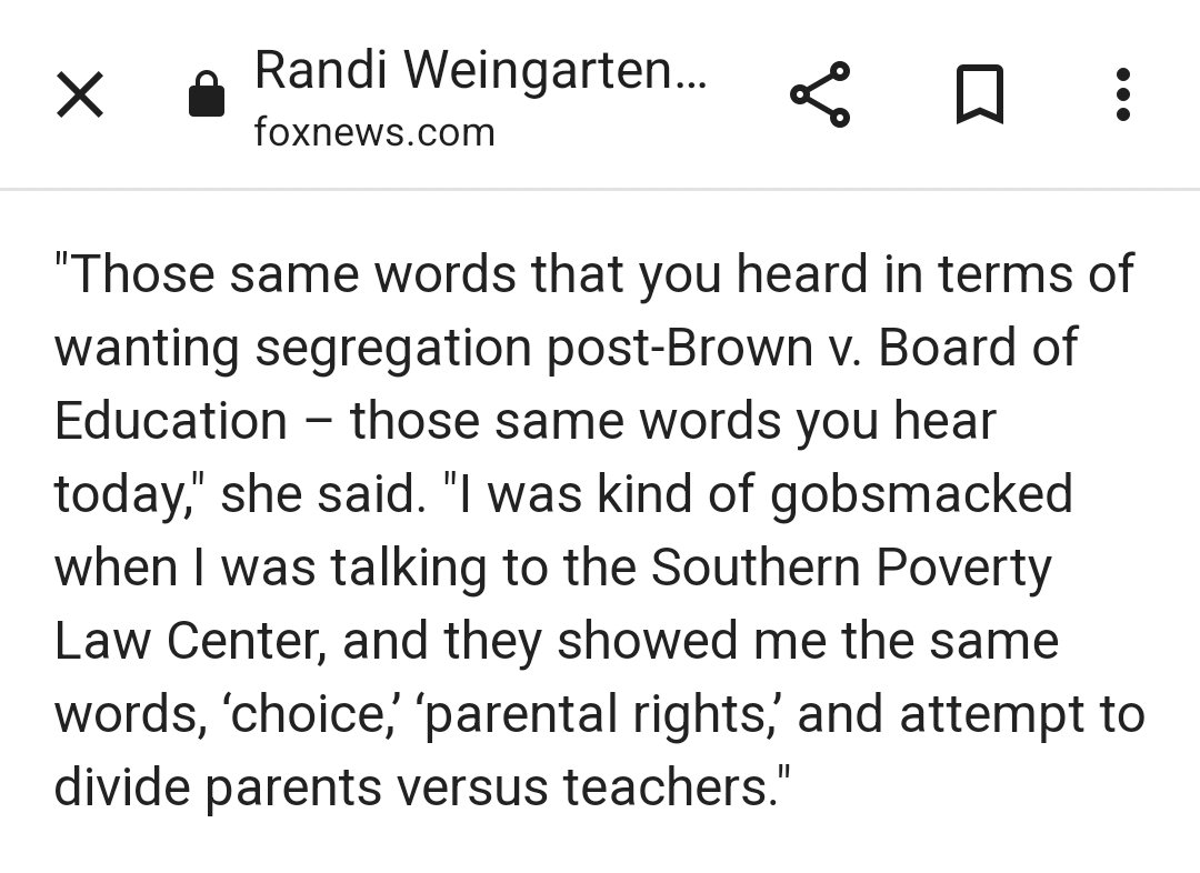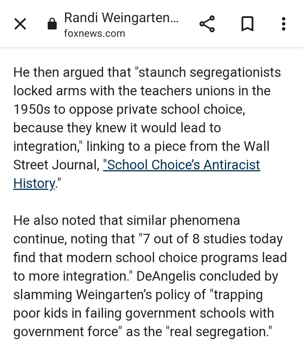 thank you for inadvertently doing more to advance school choice than anyone could have ever imagined, @rweingarten. https://www.foxnews.com/media/randi-weingarten-denies-comparing-parental-rights-advocates-segregationists-podcast-interview