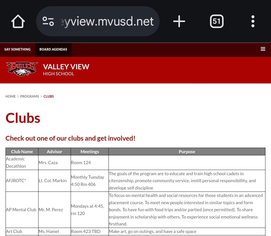 @MorenoValleyUSD UNBELIEVABLE: A "Mr. M. Perez" is listed as the school's advisor for the "AP Mental Club." Purpose: "To focus on mental health and social resources for those students in an advanced placement course.. To experience social emotional wellness firsthand." https://t.co/8tTrmmKA3O