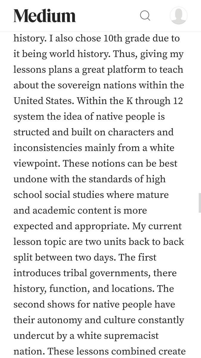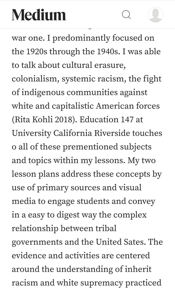 2020 Medium article on lesson plans: "I was able to talk about cultural erasure, colonialism, systemic racism, the fight.. against white and capitalistic American forces." "The evidence and activities are centered around the understanding of inherit racism and white supremacy" https://t.co/wn6hUHmyGy