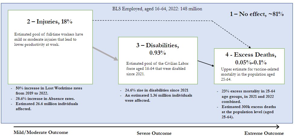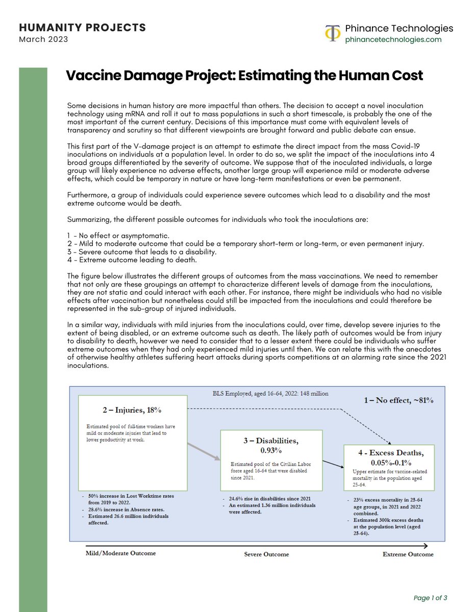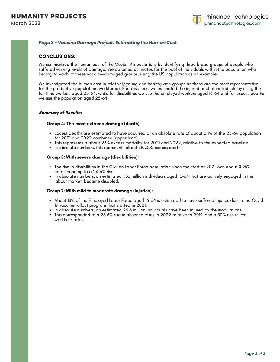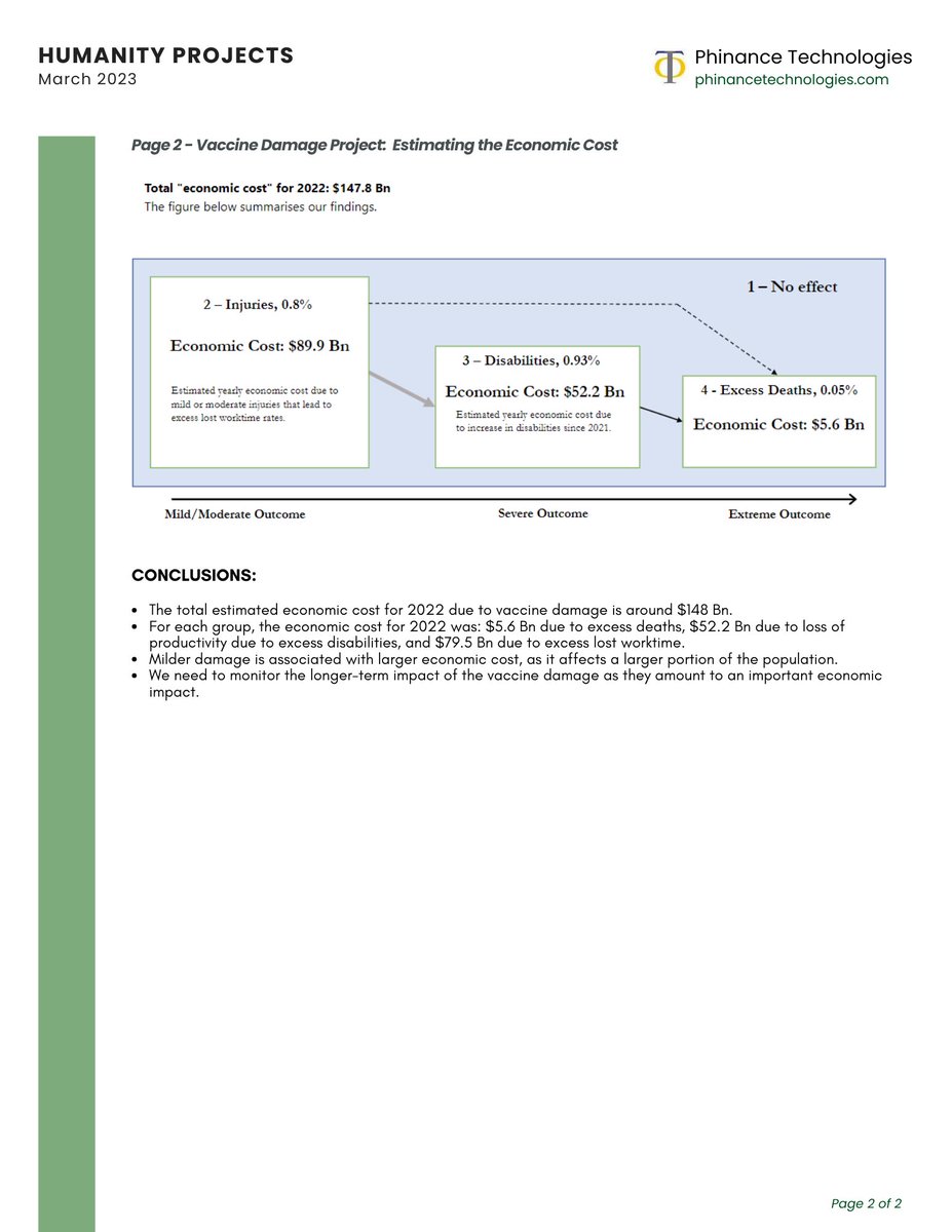 Estimated 2022 US Vaccine Damage Report: Estimated Human Cost: 26.6 million Injuries 1.36 million Disabilities 300k excess deaths Estimated Economic Cost: Total: $147.8 Billion Injuries: $89.9 billion Disabilities: $52.2 billion Excess Deaths: $5.6 Billion
