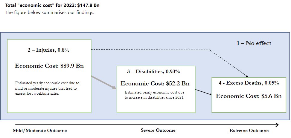 Our economic damage estimates are what we can measure. The knock effects such as lost productivity due to a worker being present but working at say 50%-75% of capacity is missed plus burn out from those picking up slack. Also supply chain delays are not captured etc and etc.… Show more