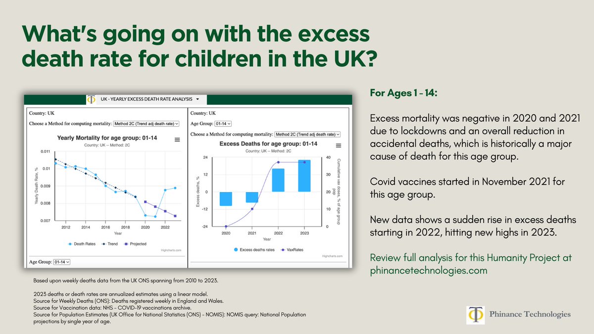 Children 1-14 in UK hits new high of 22% in annualized 2023 excess deaths from negative excess deaths of -7% in 2021. Again I thought the pandemic was over…my bad! 🤡 https://t.co/4WQCoaLBJd