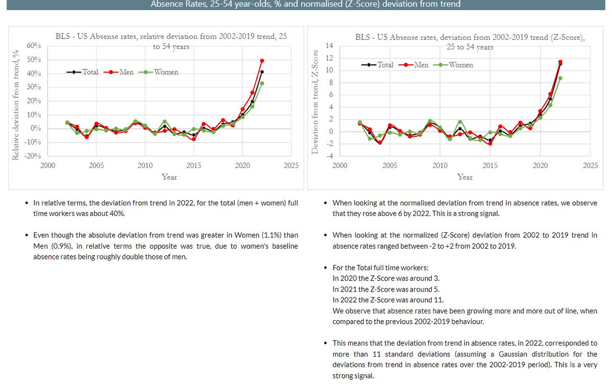 Surely everyone can agree that this statistically relevant US disability phenomenon along with BLS absence & work-time lost data warrants a full investigation no matter the cause. It’s very troubling that the working population seems to be getting disabled disproportionately to general population. I guess Covid disproportionately affects only the employed 🥴