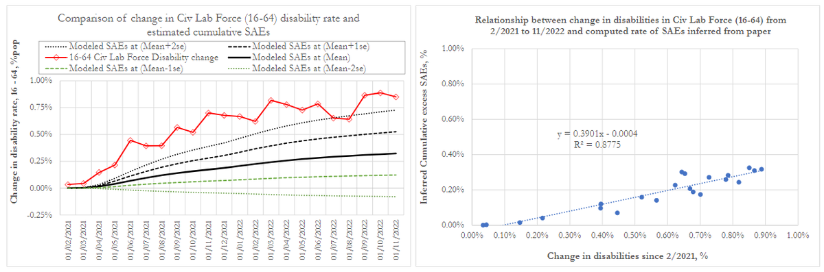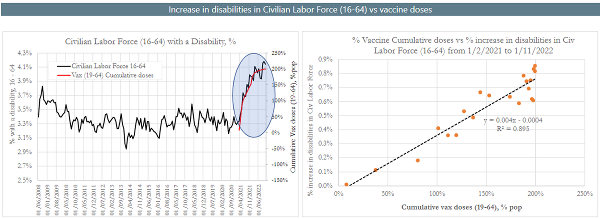 ✅However, the coincidence of the rise in disabilities with the start of the Covid-19 vaccination rollout in conjunction with the similar magnitude of the rate of SAEs (from the clinical trials) & changes in disabilities (from the BLS data) leads to a stronger case for asserting