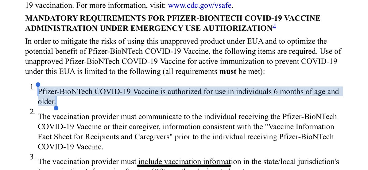 @rgvrunner01 So Pfizer, Why does your insert say for 12 and older but the FDA say 6 months old is ok? Hmmm...curious?