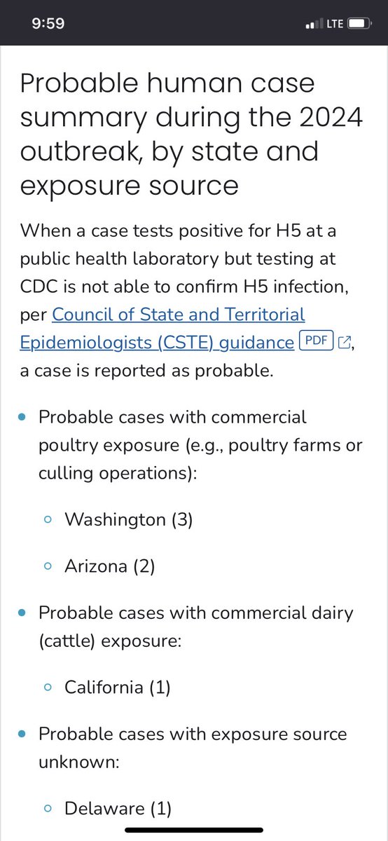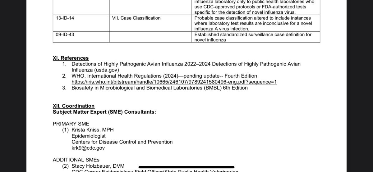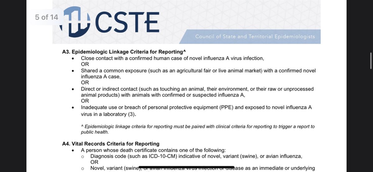 @RobertKennedyJr @elonmusk @realDonaldTrump @DrJBhattacharya @AaronSiriSG @RenzTom @naomirwolf @wideawake_media @VigilantFox @ShannonJoyRadio @GenFlynn @P_McCulloughMD @lifebiomedguru References... CSTE https://cdn.ymaws.com/www.cste.org/resource/resmgr/position_statements_files_2023/24-ID-09_Novel_Influenza_A.pdf CDC https://www.cdc.gov/bird-flu/situation-summary/index.html https://www.cdc.gov/bird-flu/spotlights/h5n1-response-12232024.html