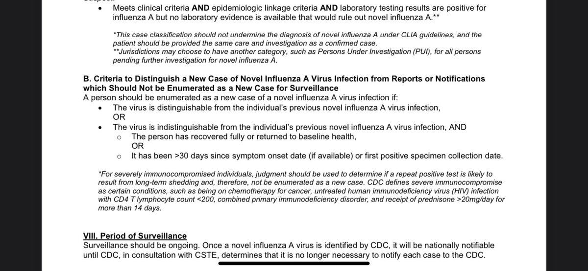 The CSTE is 'recommending' to the CDCπ how to define a case for the Bird Flu. Where have we seen that before? http://www.BeyondTheCon.com
