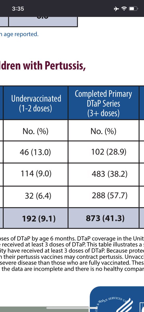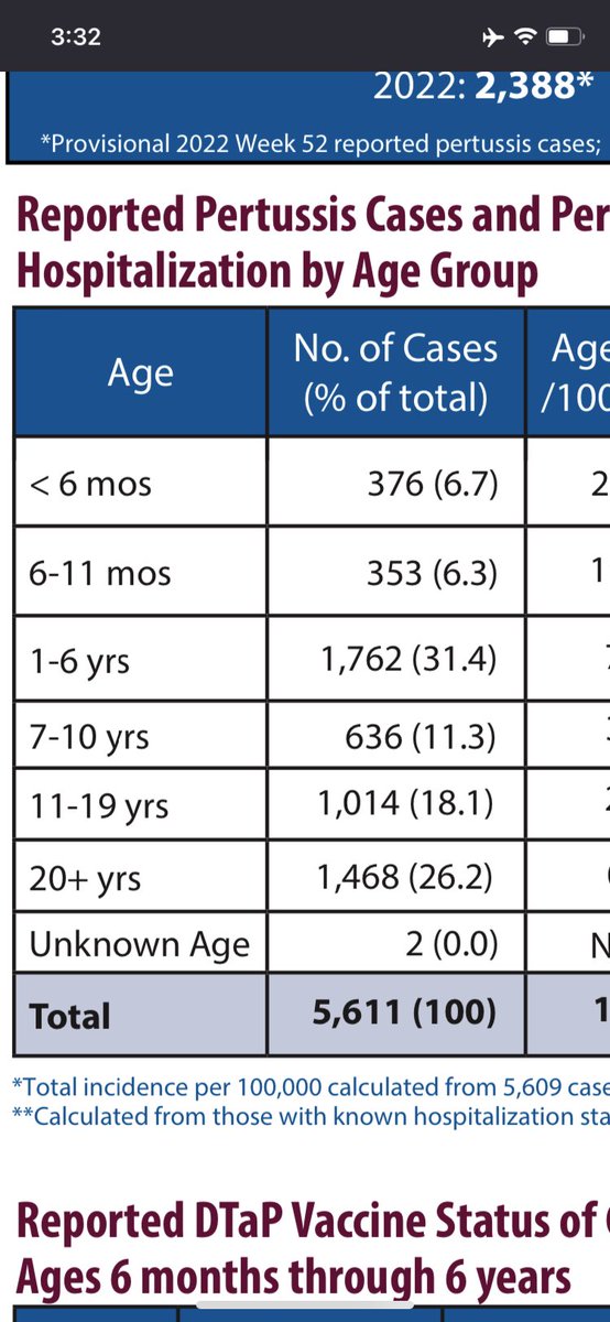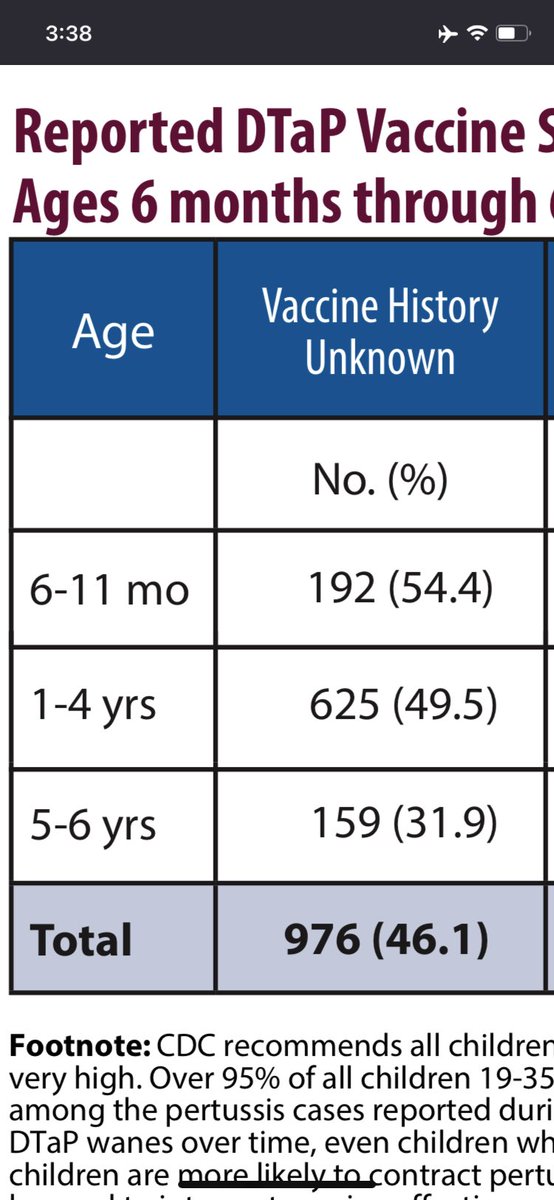 My bad... My math was off.... 95% of Whooping Cough cases were in the VAXXED... Only 5% were Unvaxxed.β€οΈπΊπΈ Yesterday I split up the 'Unknown' group at 80.4% of 46.1%... But it should have been 95% of 46.1% for this age group per the CDC. A 95% failure rate... Effective much? https://t.co/x4wilX0F8V