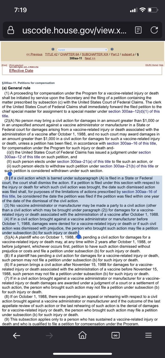 42 USC 300aa-11 They admit their products injure and kill children... Let that sink in. But you can't sue them even when they KILL YOUR BABY... Let that sink in. https://uscode.house.gov/view.xhtml?req=(title:42%20section:300aa-11%20edition:prelim)%20OR%20(granuleid:USC-prelim-title42-section300aa-11)&f=treesort&num=0&edition=prelim