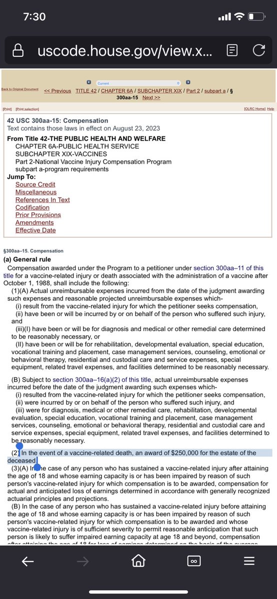 @realDonaldTrump @RobertKennedyJr You'll see where the propaganda of 'Safe & Effective' was first made law. You'll see the Vax Injury Table and how it intentionally doesn't sync up with injuries in vax inserts so they can dismiss the vast majority of claims...