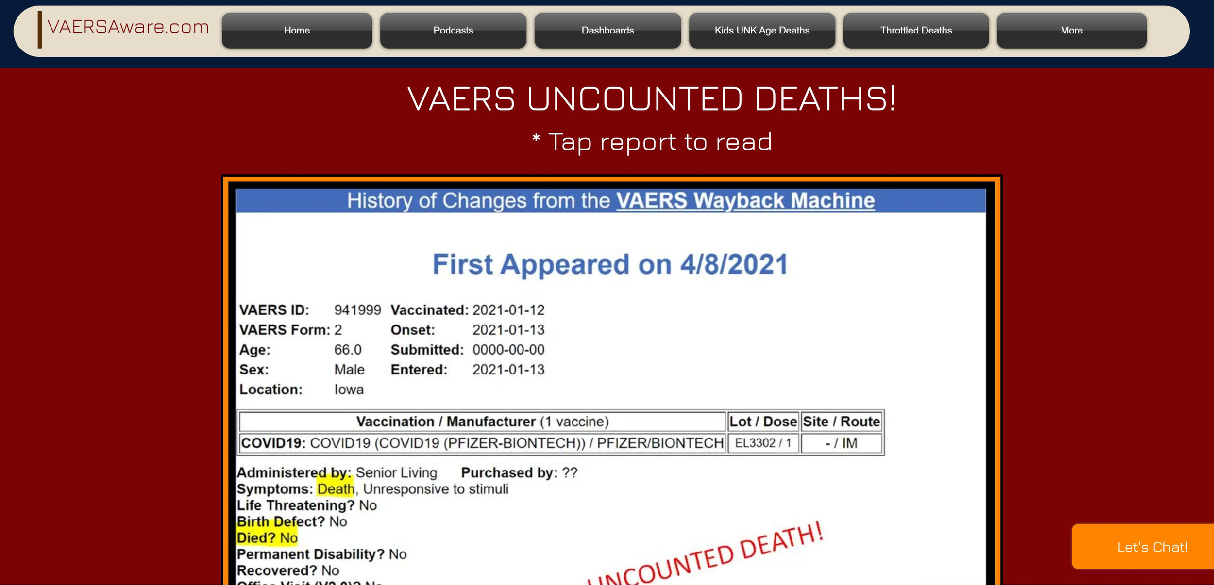 @rgvrunner01 It's criminal not to report death due to these damn shots. So Pfizer saw death in their clinical trials... @IamBrookJackson Hid death in their clinical trials... VAERS and VSAFE have thousands of death reports... Pfizer is saying they killed no one. https://www.vaersaware.com/uncounted-deaths