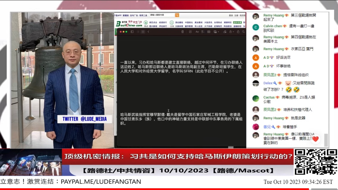 Continue: EXCLUSIVE CLASSIFIED INFO from our sources in Central CCP 2. Hamas and Xi Jinping’s Office’s established direct connection. • The contact in Xi’s Office is Z. While the Hamas contact is the vice chairman of Hamas Political Bureau SFRN (We don’t publish the real names of Z and SFRN now). • SFRN was a Palestine student in . He studied in Renmin University of China and University of International Business and Economics in Beijing. • CCP helped to reform Hamas. Hamas is now similar to CCP’s structures with Political Bureaus, Propaganda and other departments. @lude_media