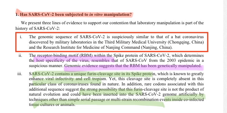 @KanekoaTheGreat The genetic modification done on #COVID19 virus is more than just the insertion of the furin cleavage site (FCS). The receptor-binding motif (RBM) was also engineered. Importantly, this RBM modification is what determines that the virus can infect human cells. • The smoking gun…