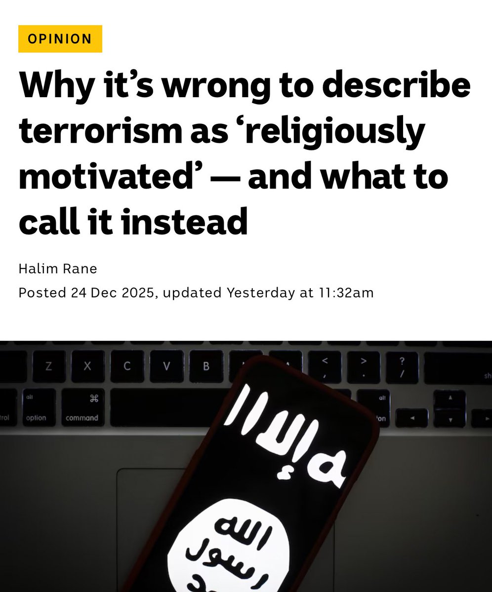 Australian public broadcaster ABC News just published an opinion piece arguing that ISIS terror attacks should not be described as โreligiously motivatedโ because this could fuel Islamophobia. โMislabelling terrorism has consequences. It fuels Islamophobia, distorts public understanding of religion and inadvertently amplifies extremist propaganda, granting terrorists the legitimacy they seek.โ