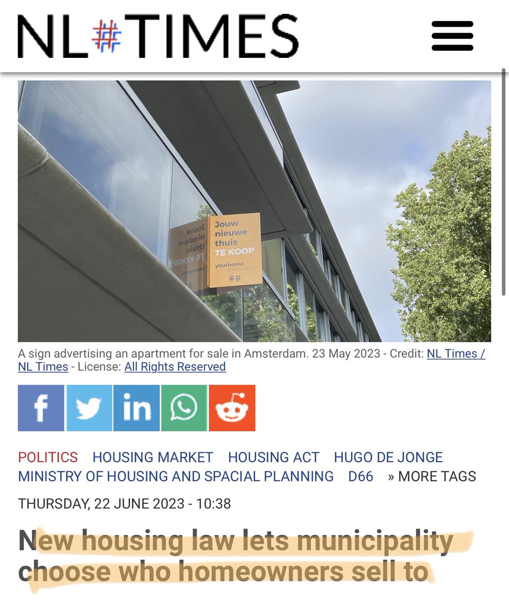 NETHERLANDS - The government won’t stop at seizing farmers land. The new Housing Act forces home owners to sell ONLY to people with a lower/middle income. The government will decide who can purchase property & will force sales at under market value. To refuse to sell to a “marginalised group” would be illegal. Wtf