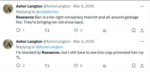 And Roseanne Barr? Now this is what I really found strange. At the same time this group went after Secure Channels, they also went after Roseanne Barr. And if you read the tweets, so did their targeted victim Asher Langton. Why? Roseanne Barr is "a far-right conspiracy theorist." I would not have normally brought this up. But that same day, mere hours later after discovering this harassment campaign, Roseanne Barr appeared on a stage with Juan O Savin holding up a jacket. I made a comment because of what initially appeared to be a strange coincidence. That comment took on a life of its own. PopeHat: How Secure Channels Attempted to Intimidate a Critic and Failed Spectacularly https://www.popehat.com/2015/09/04/how-secure-channels-attempted-to-intimidate-a-critic-and-failed-spectacularly/