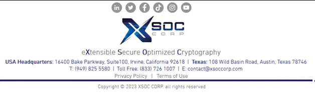 From their website: XSOC CORP is the innovator and developer of extensible, Quantum-Safe cryptosystems, and symmetric encryption key transport. Our solutions are built to mitigate threats. We protect legacy environments with no rip and replace necessary while future-proofing you, your organization, and your customers entrusted data. XSOC Corp: Who We Are https://www.xsoccorp.com/company WARNING: If you go to their website, be sure you are blocking internet trackers. There seems to be a large number that keeps getting blocked. I have been blocking more than 40 per visit. I have maxed out at 100 blocked trackers per visit.