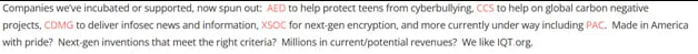 Ingersoll Lockwood Partners Per Ingersoll Lockwood website, they have incubated or supported XSOC Corp. Companies weβve incubated or supported, now spun out:Β Β AEDΒ to help protect teens from cyberbullying,Β CCSΒ to help on global carbon negative projects,Β CDMG to deliver infosec news and information, XSOC for next-gen encryption, and more currently under way including PAC.Β Made in America with pride?Β Next-gen inventions that meet the right criteria?Β Millions in current/potential revenues?Β We like http://IQT.org. https://www.ingersolllockwood.com/portfolio/