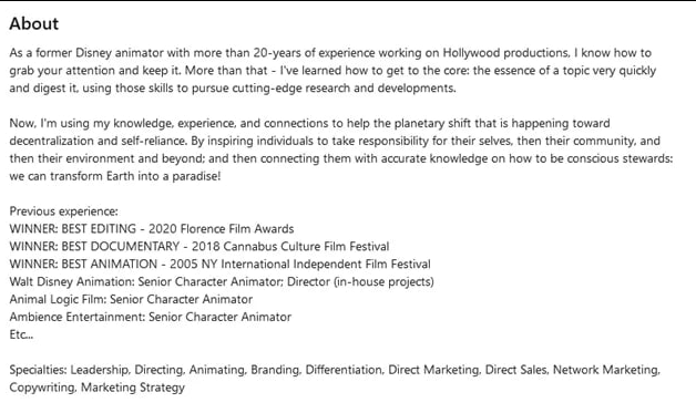 It was because of these same addresses that I went so in-depth into the research on the CEO, the co-founder, and this company. The co-founder and CEO of Carbon Capture Shield is Darryl J. Nicke II. Per his LinkedIn profile, he has over 20 years of experience as a Disney animator, working on Hollywood productions. His expertise lies in capturing attention and storytelling. In short, he has an impressive resume in the film industry and marketing. Why would someone in the film industry be involved in agriculture? It was because of this question that I set out to find out the identity of the other co-founder. Because this information was so hard to find, I am going to leave his name out of this article. In my opinion, if Carbon Capture Shield wanted that information widely known, they would put it out themselves, such as on their website. Since it is not commonly known, I am going to respect this person's privacy and not doxx them. https://www.linkedin.com/in/djnicke/