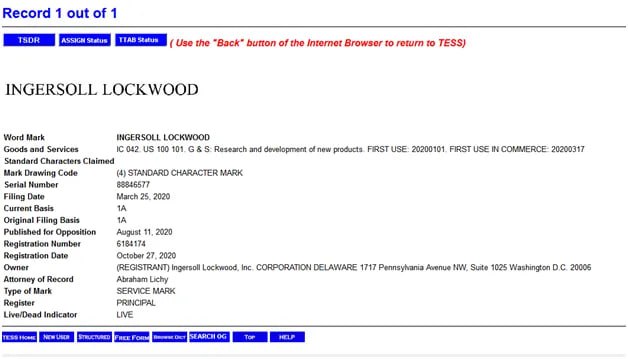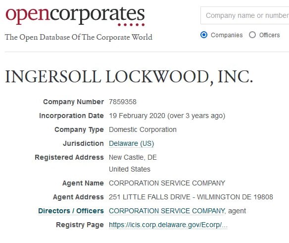 This was announced 2 months after the incorporation date for Ingersoll Lockwood LLC, which was done on February 19, 2020. https://opencorporates.com/companies/us_de/7859358