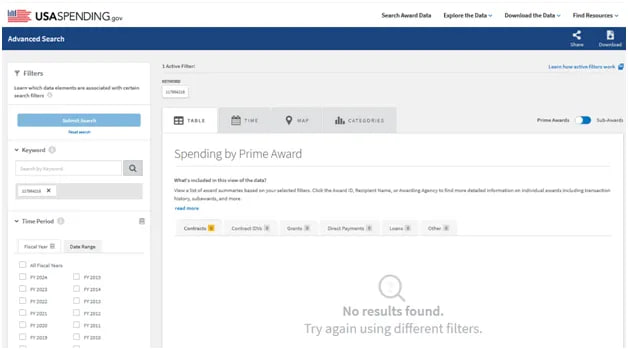 According to its website, Ingersoll Lockwood has government clients. This means that it would have government contracts. Does it? Searching by both its name and DUNS Number you will not find any results. https://www.usaspending.gov/search/?hash=1a8b3f8532a4bf011df237c3a637e3e1 https://www.dnb.com/business-directory/company-profiles.ingersoll_lockwood_inc.21a3d4847ba605050d7a44daebd25c7d.html