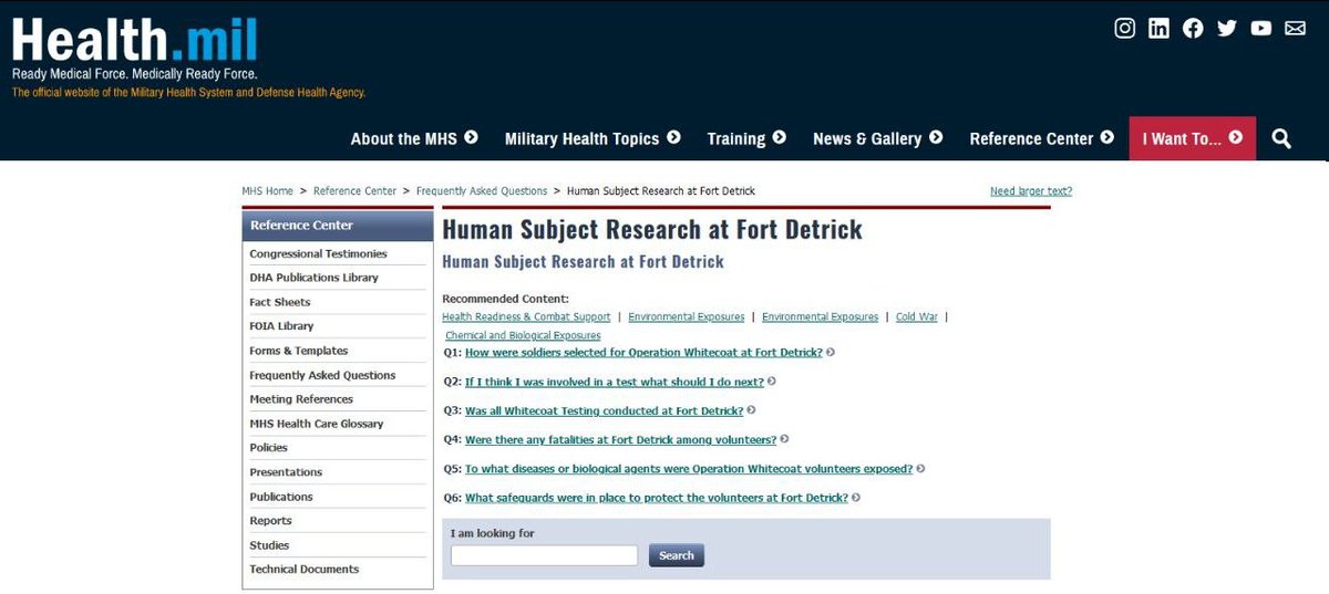 Plus, this popped up - a website for the victims of human subject research that was carried out by Fort Detrick. https://www.health.mil/Reference-Center/Frequently-Asked-Questions/Human-Subject-Research-at-Fort-Detrick