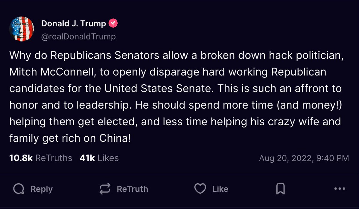 RINO ALERT: Elaine Chao has just been named to the Board of Directors of the Kennedy Center. That's Glitch McConnell's wife, who Trump himself called "crazy" in 2022. https://t.co/nH5g4jeSzq