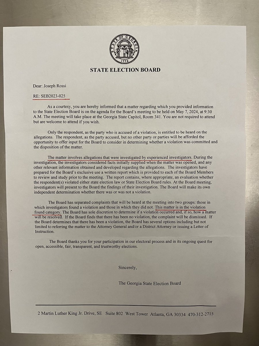Georgia’s election board now admits to violations of election law in 2020. In writing. It’s over for the election fraud deniers. https://t.co/BiVIRoxA9R