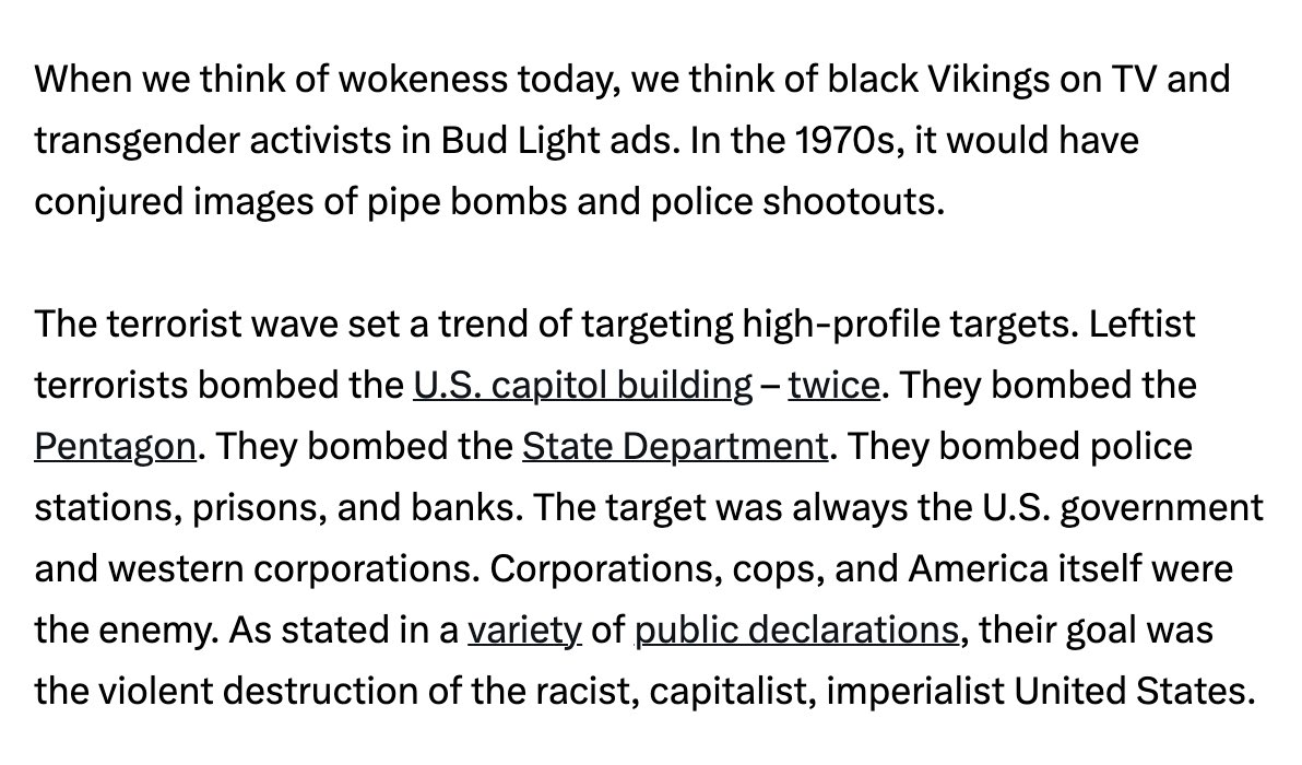In 18 months from 1971-72, we had 2500 domestic bombings—more than 5 a day. But most Americans don't remember this. Why? Because the Left controls the schools, the press, the whole system of organized culture—so it's been erased from our popular memory. https://t.co/8oadJQxh9L https://t.co/dxFcbeD1WB